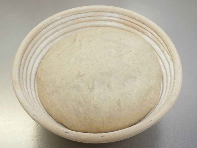 17. 二次発酵:ラップをして、暖かい場所で2倍の大きさになるまで発酵します。夏場は常温で、冬場はオーブンの発酵機能(35℃)で約50分程度が目安です。
